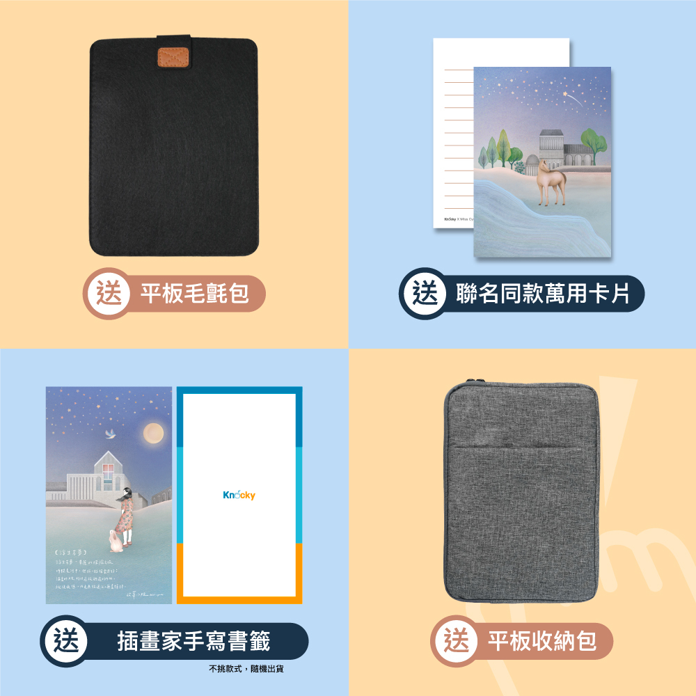 買即贈聯名同款萬用卡片、插畫家聯名書籤、平板包一個
